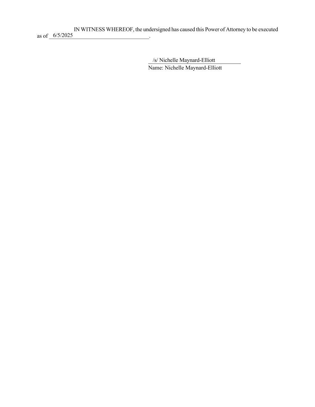 IN WITNESS WHEREOF, the undersigned has caused this Power of Attorney to be executed as of ____________________________________. Name: Nichelle Maynard-Elliott 6/5/2025 /s/ Nichelle Maynard-Elliott